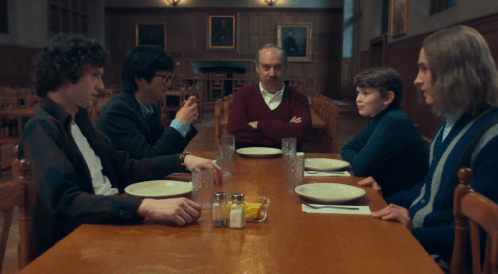 Da’vine Joy Randolph brilha ao dar a vida a uma mãe que sofre pela perda precoce de seu filho. De origem humilde, foi com seu trabalho como merendeira, que Mary conseguiu bons estudos para seu filho, mas não conseguiu impedir o destino cruel do alistamento militar. Vemos a solidão que a mulher sofre, junto com as micro agressões verbais que os alunos abastados cometem com ela. Ambos Paul Giamatti e Dominic Sessa possuem uma química incrível em cena, que apesar de demorar para engatar, vemos que eles são dois lados da mesma moeda.