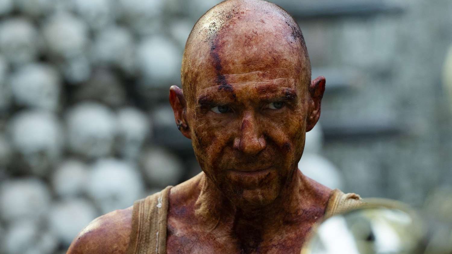Não falo tanto sobre os aspectos que dizem respeito ao gênero do filme propriamente pois acredito que não são eles os mais interessantes de serem comentados, e que aspectos semelhantes já foram muito explorados nas duas últimas entradas. “28 Years Later” adiciona algumas pitadas de informação e construção de mundo ao lore da franquia, como a introdução de infectados “Alfa”, maiores, mais fortes e mais inteligentes do que seus semelhantes. Há também outra questão fisiológica de um tipo bem específico de infectado que é apresentada aqui e adquire relevância para a trama principal, mas no geral seguimos com as mesmas regras, mesmos costumes e mesmos comportamentos que se espera de uma população sobrevivendo ao apocalipse zumbi. A sociedade da ilha não é explorada para além do básico, e tampouco são os grupos que estão no continente, com exceção do personagem de Ralph Fiennes e da participação do Sueco Edvin Ryding, que mais serve como alívio cômico.